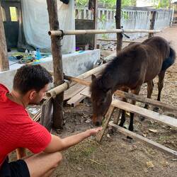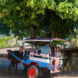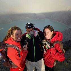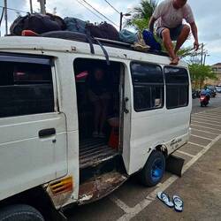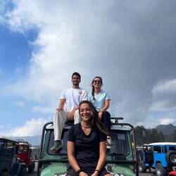 Als es endlich so weit war, waren wir dementsprechend k.o. und der Tag war nicht aufregend. Auch der Montag war einfach mal nur zum entspannen & relaxen gedacht. Robin hat für 3€ noch nen Haarschnitt abgestaubt und dann ging es früh ins Bett. Denn um 00:00 stand der 2.Vulkan auf dem Programm. Außerdem sind wir ab heute nicht mehr zu zweit, sondern zu dritt unterwegs. Bine (eine gute Freundin aus der Uni & Robins ehemalige Akrobatikpartnerin) hat die letzten Monate in Australien verbracht und wird uns die nächsten Wochen begleiten. Darauf haben wir uns riesig gefreut! Ihre Ankunft war etwas holprig aber sie schaffte es gerade noch pünktlich zur Vulkantour. Wir wurden per Shuttle zum Meetingpoint gefahren und dann ging es zu Fuß los. Zumindest für die meisten von uns. Denn die faulen Asiaten haben sich teilweise per „Schubkarren-Taxi“ von den Einheimischen auf den Vulkan ziehen lassen - abartig. Wir waren froh,dass wir endlich mal bisschen quatschen konnten, denn wir haben Bine seit Dezember 2023 nicht mehr gesehen.