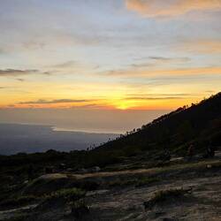 Der gestrige Tag ging für eine lange Zugfahrt nach Probolinggo drauf. Wir kamen nachmittags an und gingen direkt ins Bett, denn durch die Zeitverschiebung war das Deutschland-Spiel um 23:00Uhr. Also standen wir pünktlich auf und blieben direkt wach, bis um 01:00Uhr unsere Tour los ging. Wir wurden abgeholt, holten noch eine Franzosin (Sara) und fuhren etwa. 50 Minuten Richtung Vulkan Bromo. Aufgrund der Verlängerung, guckte Robin sogar während der Fahrt noch das Spiel ⚽️. Dann stiegen wir in einen Jeep um und wurden vom Massentourismus Indonesiens begleitet. Jeep an Jeep an Jeep ging es den Berg hoch. Oben angekommen, fragte uns der Fahrer ob wir noch Kaffee wollen. Da weder Sara noch wir Kaffee mögen, gingen wir schonmal bis zur Spitze des Berges. Wir wunderten aber freuten uns, denn oben angekommen waren wir allein und hatten einen tollen Blick auf die Sterne und Sternschnuppen. Allerdings stellte sich schnell raus, dass der Sonnenaufgang erst 2h später ist und die ganzen Touris sich unten noch mit Kaffee aufwärmen. Denn wir hatten 10 Grad und da wir das ja seit Wochen nicht mehr gewohnt sind, war es wirklich arsch kalt. Während wir uns irgendwie warm hielten, vergingen die Minuten und es kamen immer mehr und mehr Menschen, bis sich dann endlich der Himmel verfärbte. Zuerst wurde es rot, dann lila und schließlich vermischte es sich zu orange. WUNDERSCHÖN! 🤩 auch die Sicht mit den verschiedenen Farben auf den Bromo war unvergesslich!