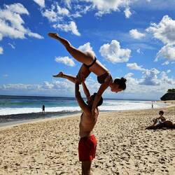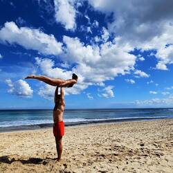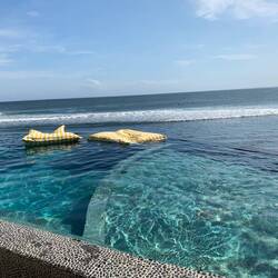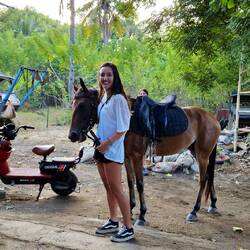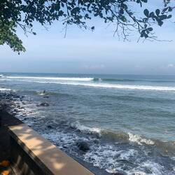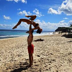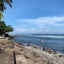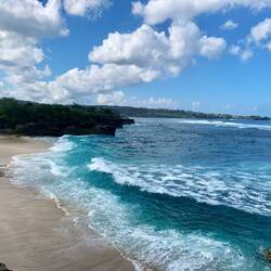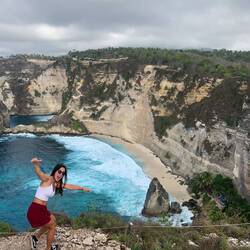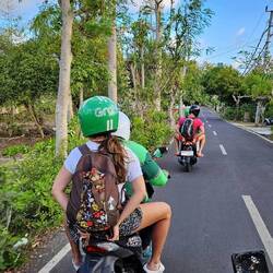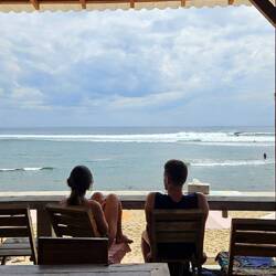 Tag 2 waren wir am sogenannten Dreamland Beach. Auch sehr schön & nicht mehr so felsig, allerdings war die Strömung sehr stark und die Wellen sehr hoch, sodass Surfen an diesem Tag für uns alle ausfiel. Robin hatte zwar trotzdem voll Spaß, sich durch die Wellen zwirbeln zu lassen - mir war es zu krass 😅 Wir machten dafür etwas Akrobatik, was zu dritt ja deutlich leichter ist und konnten coole Bilder machen! Abends ging es per „Motorrad-Taxi“ zurück. Da in Asien generell der Fokus viel mehr auf Motorrädern statt Autos liegt, ist so ein Taxi ganz üblich. Man bucht sich einen Fahrer, springt auf sein Motorrad und der fährt dich dann heim. Leider haben wir nicht richtig aufgepasst und wurden hierbei etwas abgezockt aber mei, schlussendlich haben die 3€ plus gemacht. Also nicht der Rede wert.
