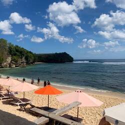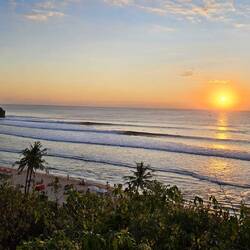 An Tag 3 gingen wir nochmal früh morgens an den Balangan Beach. Vormittags lagen wir am Strand & Nachmittags ging es für Bine und Robin zum Surfen 🏄 mir waren die Wellen zu hoch, weshalb ich dann lieber zu gucke. Robin war allerdings mit seiner Surf-Session auch nicht zufrieden. Zum Sonnenuntergang machten Robin & ich an einem Yoga-Kurs mit. Dieser fand auf einem Hügel mit Aussicht übers Meer statt, wirklich ein sehr sehr schöner Platz. Es war sehr spirituell, total herzlich und wir haben uns richtig gut danach gefühlt. Bine hat derweil fleißig Bilder vom Sonnenuntergang gemacht - danke dafür 😉