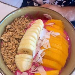 Am letzten Morgen ging Bine nochmal früh morgens an den Strand zum Surfen. Robin & ich haben ausgeschlafen und waren dann zusammen in einem süßen Café frühstücken 🤗