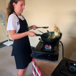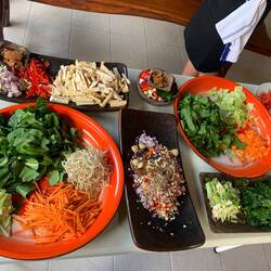 Aufjedenfall war unser „Chef-Koch“ sehr lustig, wir hatten viel Spaß und haben mit frischen Zutaten leckere Gerichte zubereitet. Nudel-Hähnchensuppe, Nasi Goreng, Satay mit Erdnusssoße und natürlich Tempe. Zum Nachtisch gab es noch grüne Crêpes mit Kokosfüllung. Sowas von lecker 🤤!! Den Heimweg bin ich dann auch mehr gerollt als gelaufen 😅 Czytaj więcej