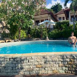 Dafür war die Fahrt sehr schnell, wir haben eine tolle Unterkunft mit Pool und wohnen in einem süßen Bungalow. Wir liehen uns einen Roller aus und wollten eigentlich noch die Insel erkunden aber wir waren so fix & fertig, dass wir den Plan änderten, uns was zu Essen bestellten und uns nicht mehr bewegten 😂