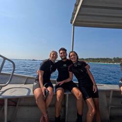 Am letzten Tag sind alle mit etwas Restalkohol aufgestanden. Geplant war, dass wir direkt vor dem Frühstück zum schnorcheln gehen. Das hat mir aber nicht so gut gefallen, weshalb ich an Bord geblieben bin. Laut den anderen hab ich aber nichts verpasst, da die Sicht mieserabel war. Nach dem Frühstück ging es dann an den nächsten Schnorchelpunkt. Robin & ich blieben wieder an Bord weil ich einfach keine Lust auf Wasser heute hatte. Die anderen haben aber fleißig Bilder gemacht und wohl recht viele Baby Haie gesehen! Dann stand auch schon wieder der Rückweg an. Und es hieß „Abschied-nehmen“. Verrückt, wie eng eine Gruppe in in 4 Tagen werden kann. Leider gehen wir jetzt alle in unterschiedliche Richtungen und auch in Deutschland wohnen wir alle komplett verteilt aber hey - man sieht sich immer zwei mal im Leben 😉