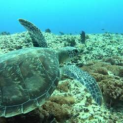 Für den zweiten Tauchgang mussten wir ein paar Wellen erklimmen & auch das Boot knutschte mal kurz nen Baum vom Ufer. Aber alles halb so wild. Der Tauchgang war sehr schön! Tolle und bunte Korallen und als es langsam ans aufsteigen ging und mir bewusst wurde, dass das für erstmal längere Zeit der letzte Tauchgang ist, kam noch ne Schildkröte vorbei 🐢 (so quasi zum tschüss sagen)