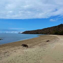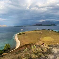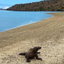 Tag 3 war hingegen schon deutlich aufregender. Morgens wurden wir mal wieder geweckt und dann ging es auf die Komodo Insel. Da wohl gerade Paarungszeit ist, ist es sehr unwahrscheinlich Komodo-Warane zu sehen aaaaaaber wir hatten Glück und haben 3 gesehen 💪🏽 Die Viecher sind schon groß und auch gefährlich. Man sollte ihnen nicht zu nahe kommen, da die wohl Spucken und die Spucke so viele Bakterien beinhaltet, das man davon sterben kann. Also blieben wir hinter unserem Guide der viel zu leise geredet hat 😂 Naja,das einzige was wir eigentlich gelernt haben ist, dass der Sexualakt bei den Tieren wohl bis zu mehreren Tagen dauern kann. Das war dann unser neuer Running-gag.