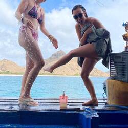 Mittags durften wir mitten auf dem Ozean vom Boot aus ins Wasser springen. Katharina durfte zwischenzeitlich das Boot mal fahren und duschen ist übrigens auch sehr interessant hier 😂