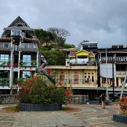 Unsere letzte Überfahrt per Boot stand heute bevor. Da wir aber mit unserem neuen Tattoo nicht ins Wasser sollten, gestaltete sich das Einsteigen ins Boot als etwas herausfordernder. Aus diesem Grund stiegen wir als letzte ein und da waren leider keine Plätze mehr frei. Also setzte uns die Crew kurzerhand an „Deck“ zu den Koffern und Rucksäcken. 5 andere sollten das gleiche tun. Davon regte sich ein Mann ziemlich darüber auf, da wir logischerweise auch leicht nass wurden. Robin & Ich schützten unseren Tattoo-Fuß in einer Regenhülle, haben die Sache positiv gesehen und hatten mal wieder viel zu lachen 😆 kurz vor dem Hafen, mussten wir uns dann aber doch unten in den Gang des Bootes stellen, da im Hafenbereich viel Polizei unterwegs ist und das Sitzen beim Gepäck natürlich illegal ist 😂