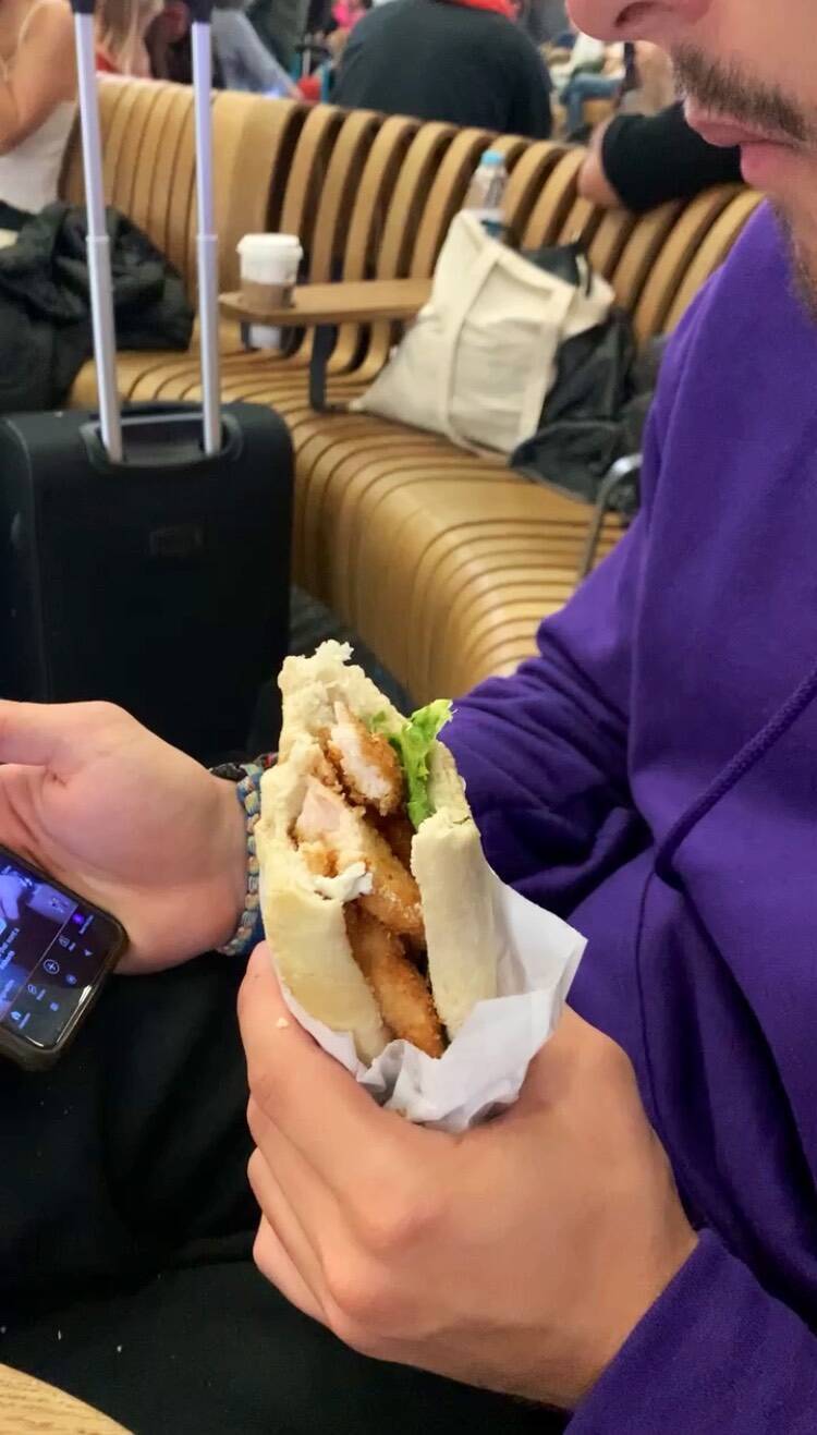 Und dann ging es morgens auch wieder an den Flughafen. Robin hat sich morgens um 6 ne Schnitzelsemmel genehmigt und dann ging es zurück nach Deutschland 🇩🇪