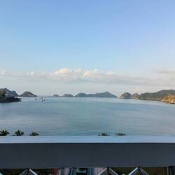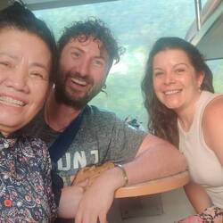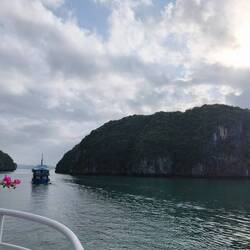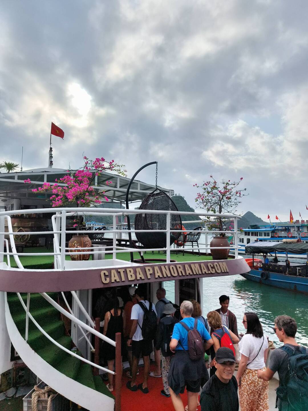 Our bus managed to get on the ferry.... Just..... And we made our way over to Cat Ba as the sun was setting. It was pitch black by the time we got there so looking forward to taking in all it's beautyBaca lagi