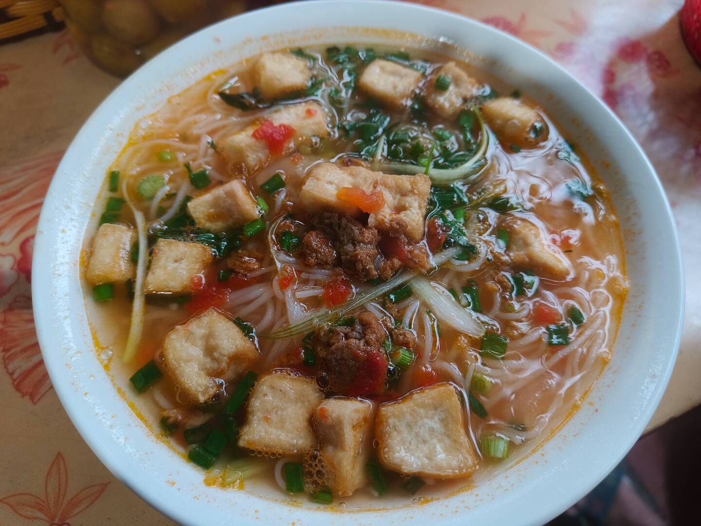 We went in search of some local breakfast but when we turned up it was closed. We'd walked past a very local looking Pho shop so decided we'd give that a try. Sam had fish Pho and I had tofu. TheBaca lagi