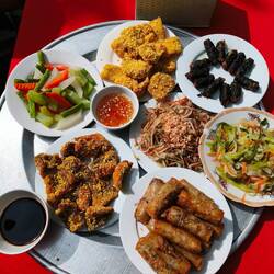 We made Pork spring rolls (+ shrimp for Sam), Chicken Salad, Fish Hot Pot, and Rice Pork Pancake andBaca lagi