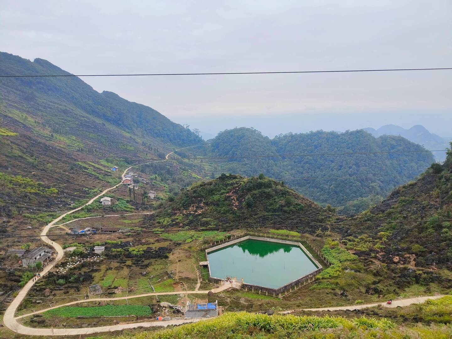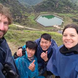 We stopped off to have a look at the local towns water supply. There is no water in this area so the locals have to use this supply. Normally it is very full but Han says it's looking pretty low rightLue lisää