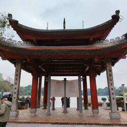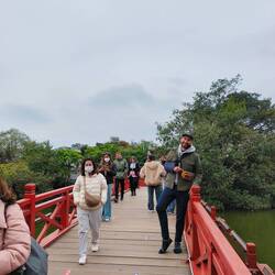 The famous red bridge in Hanoi which leads to the Ngoc Son Temple. Situated on Hoan Kiem lake it's a stunning location and a beautiful temple. There is an ancient folk story about the golden, rareLue lisää