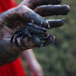 Mélanie s’absente 20min pour rattraper Zohra et Jean-Michel, encadrants qui étaient derrière, et Emmy en profite pour partir dans la vase à la chasse au crabe, je vous laisse admirer les résultats…