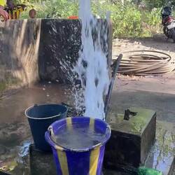 On reste donc une petite heure sur place, découvre le forage, tout le processus de soufflage, qui consiste avec un gros moteur à souffler hors du puit toutes les branches, sables, saletés qui ont pu s’y mettre au fil du temps.