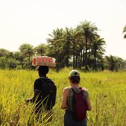 Plus tard, Mélanie, notre coordinatrice et volontaire à la base, nous mène dans une promenade vers la mangrove de Boffa.