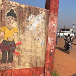 On se met en route pour Conakry vers 6h45, la route n’est pas si longue (150km), mais les bouchons, et surtout l’état de la route, n’aident pas. On finit par arriver vers 12h devant un centre culturel.