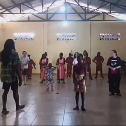 Mélanie nous a préparé des activités surprises pour aujourd’hui, dont celles-ci. Personne ne sait pourquoi on est là jusqu’à ce qu’elle nous révèle avoir réservé pour un cours et spectacle avec un groupe de danse professionnel avec des percussionnistes.