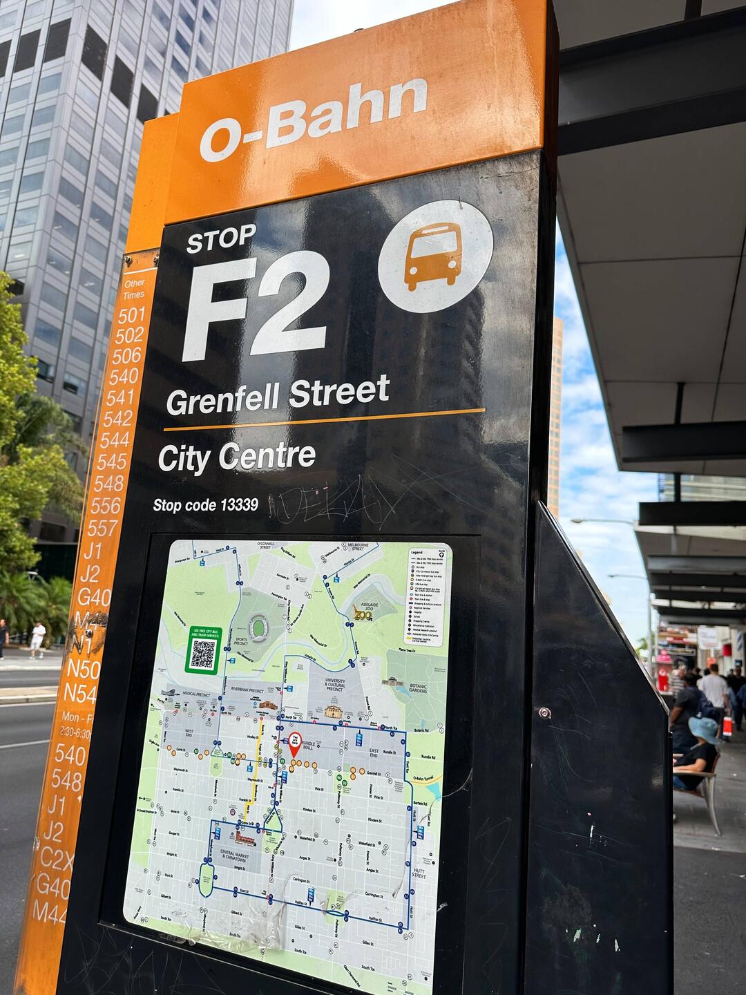 Mit dem Bus fahren wir um ca. 10.00 Uhr ins Stadtzentrum von Adelaide. Das System ist super man hält seine Kreditkarte an den Scanner im Bus, es wird 1 AUS$ (ca 50 Rappen) abgezogen und dann kann man 2 Stunden ÖV fahren. Als wir die Hochhäuser sehen steigen wir aus.Read more
