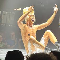 Was für eine schräge Show! Eine, wo wirklich alle Hüllen fallen oder in der Torte gewälzt werden.. Ich lass die Bilder sprechen… ;-)