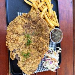 Schnitzeln, wir haben unseres nicht mal zu zweit essen mögen.