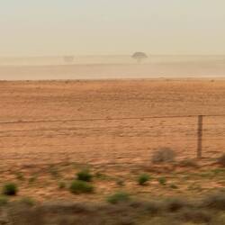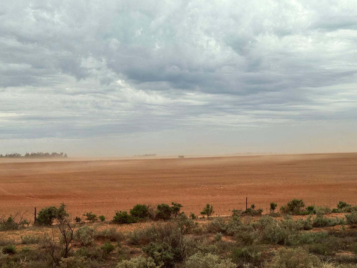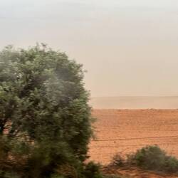 Obwohl uns fast der ganze Tag Regen begleitet, sehen wir einen Sandsturm. Zahlreiche Tafeln entlang der Route warnen auch davor.