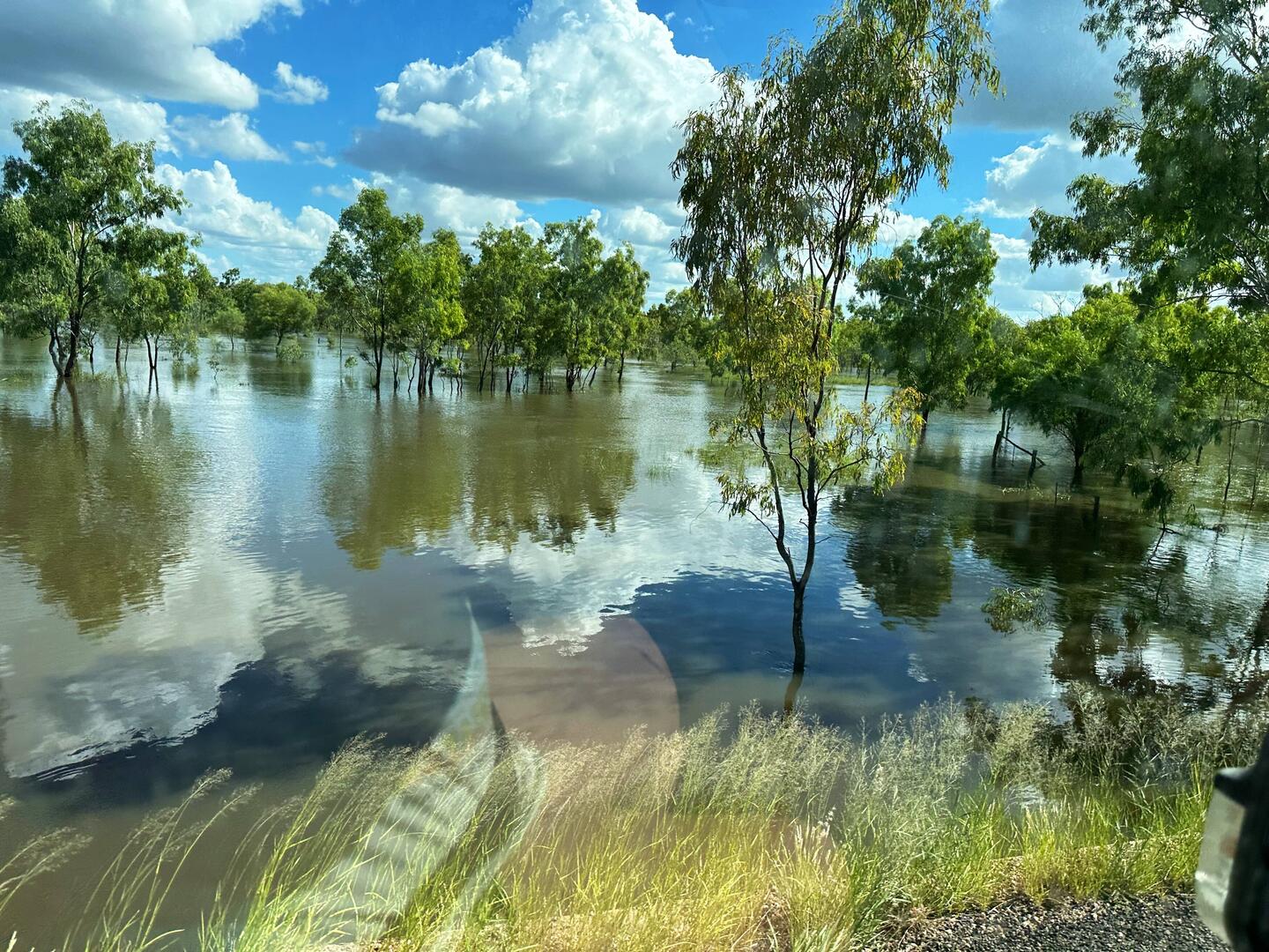 Zum Glück liegt das Wasser nur noch links und rechts der Straße. Man sieht Spuren der Überflutung, aber inzwischen ist viel Wasser versickert und der Himmel blau. Wie so oft: Glück gehabt und gutRead more