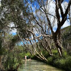 Zum Abschluss waten wir noch durch das Glasklare Wasser des Eli Creek.