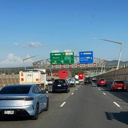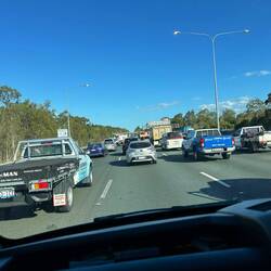 Wir erblicken das erste Mal die Skyline von Brisbane. Und Stau gibt es hier tatsächlich auch. Die nächsten Tage verbringen wir bei Freunden.
