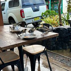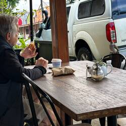 Heute ist das Wetter tatsächlich besser. Im Kaffee hat es hauptsächlich Langzeit Bewohner der Stadt……