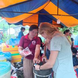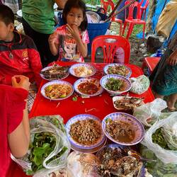ניסינו את מזלנו ובין כל מנות הדגים הצלחנו להסביר במופע פנטומימה מרגש שאנחנו בקטע של סלט פפאיה אבל בלי כל השרצים והדגים שהיא דוחפת פנימה.