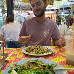 על זה הוספנו את כל האוכל החדש שלא יצא לנו לראות בתאילנד שנמצא בבלוק מלא המישלנים שליד ההוסטל החדש - מקום מפוצץ באנשים ומוכר רק פרנצטוסטים, קציצות ירק עטופות בדף אורז, קוביות ממולאות שעועית מתוקה וכאלה