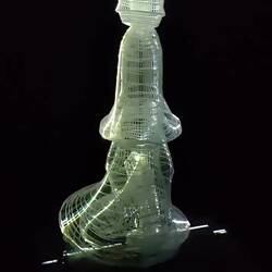 Op de 2e en 3e verdieping, alsmede in de kelder, is een jaarlijkse expositie met een technologische tint. De werken hier spreken mij meer aan. Er is een nutteloze generator die elektriciteit opwekt door een motorfiets van 3 meter hoog langzaam te laten zakken en via kabels en tandwielen een generator aandrijft. Je hebt helaas net wat meer elektriciteit nodig om de motorfiets weer op te tillen. Ook erg vermakelijk zijn de "Stray Robot Sentai Crangers": robot-stofzuigers die gefilmd zijn terwijl ze allerlei avonturen in de stad beleven. Of de informatiefilmpjes over hoe je een goed voedzame maaltijd om je hooi heen bouwt, afkomstig uit een toekomst waarin de wereld is overgenomen door een geiten-aanbiddende sekte. Het hoogtepunt is echter een serie lichtinstallaties die mij aan de 3d zoötropen van mijn vader doen denken. Hier is het echter een continue 3d-gaasconstructie waar of een lichtstraal langsbeweegt, of die zelf rondraait om de illusie van beweging te wekken (8). Heel vet gemaakt.