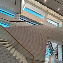 In de vaste collectie is in een grote serie tekeningen van net na de Great Kanto Earthquake uit 1923 te zien hoe Tokyo voor een groot deel met grond gelijk is gemaakt. Indrukwekkend. Ook indrukwekkend zijn de gigantische kleurrijke doeken van Sam Francis (9). Ik herken ze meteen van de ene keer dat ik zijn werk in het Centre Pompidou in Metz heb gezien, maar deze examplaren zijn nóg groter. Na weer af te dalen door het puike trappenhuis (10) en een kijkje te nemen in de tuin, waar niks te zien is, gaan we naar buiten.