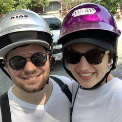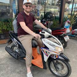 Heute gab es ein erstes Mal. Wir haben zusammen eine Scooter-Tour über Koh Samui gemacht. Wie die coolsten Biker des Landes fuhren wir entlang von mehr oder weniger befestigten „Straßen“ zuLes mer