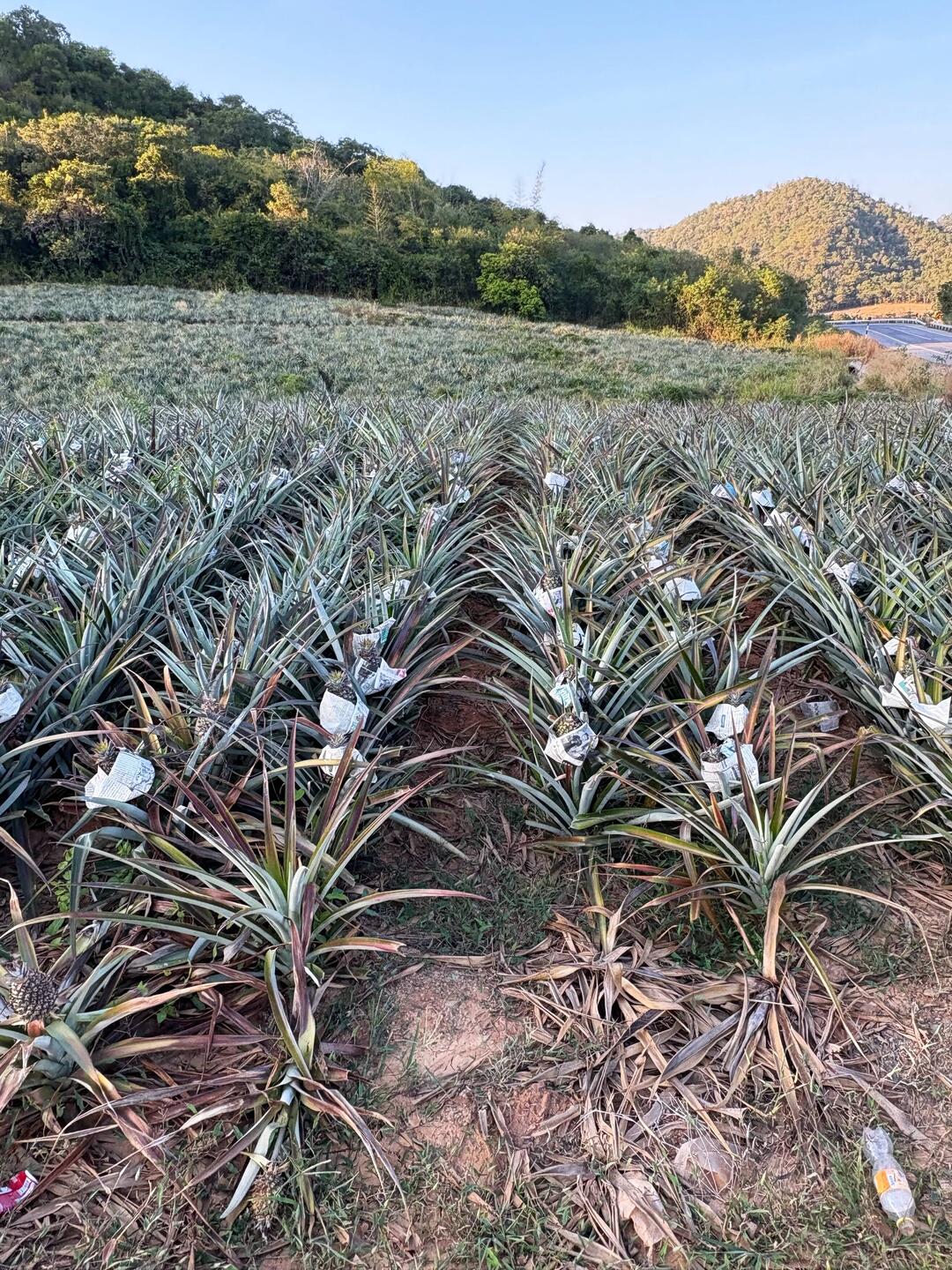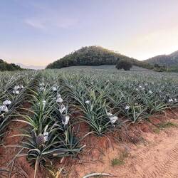 Auf dem Heimweg dann noch ein kurzer Zwischenstopp – Ananasfarm & Mangoplantage, weil man nach Elefanten, Schlangenwarnungen und „Puma und so“ offenbar noch Bildung braucht.