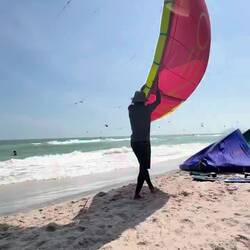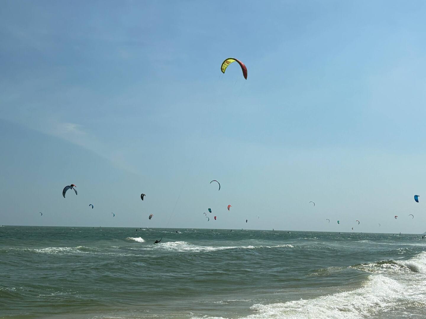 Dann näher ran – nein. Kitesurfer. Hunderte. Huiii !!!