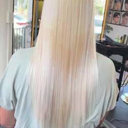 Ich bin mit gelben Haaren beim Friseur aufgeschlagen.