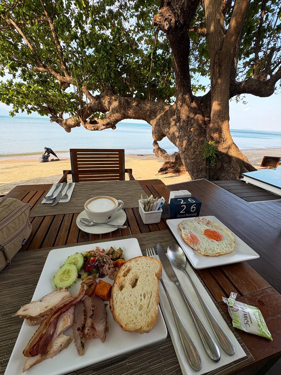 Angekommen im Inselparadies. 🦈🐬🐠🐡 Frühstück direkt am Strand, Füße im Sand, Blick aufs glasklare Wasser. Keine Wellen, keine Aufregung – 🥰🥰🥰hier kann man baden, 🥽ohne umRead more
