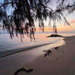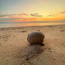 Hier direkt an meinem Strand geht um exakt 18 Uhr die Sonne unter – eigentlich spektakulär.