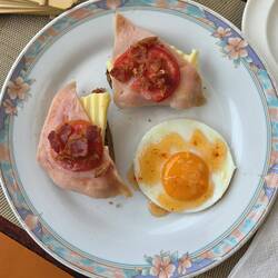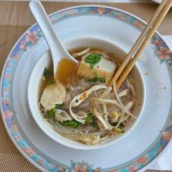 Bunte Mischung aus allem: Variationen von Ei, Nudelsuppe, Curry, Dumplings, Toast, Brot etc