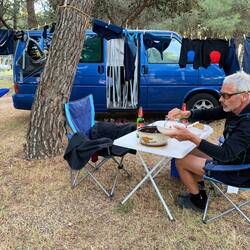 Frühstück mal wieder im Auto wegen eines kurzen Schauers, aber dann wieder Sonnenschein für den Rest des Tages!🌞