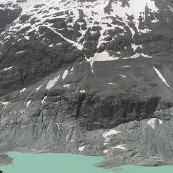 Erstes Aufstehen heute um 6, um den Sonnenaufgang zu genießen. Den gab es zwar nicht so richtig, aber die schneebedeckten Berge, die sonst immer wolkenverhangenen waren, leuchteten im erstenLæs mere