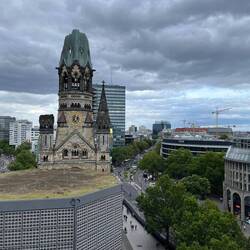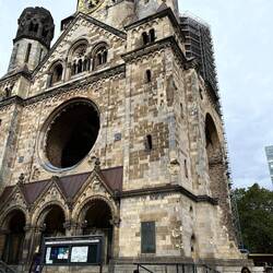 De Gedächtnis Kirche blijft indrukwekkend. De nieuwe toren nu in de steigers. Dat contrast missen we nu.