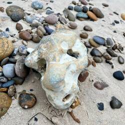 Strandspaziergang und Steine sammeln