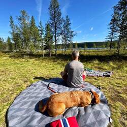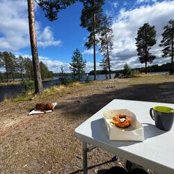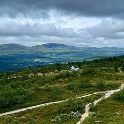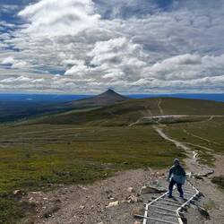 nach dem Frühstück reist es etwas auf wir gehen auf den Funäsdalsberget soll eine tolle Aussicht haben. Kurze Anfahrt, Nala muss noch pausieren,Read more