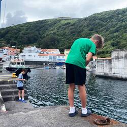 Visite de notre futur hébergement à la fajãs dos cubre, piscine naturelle et pêche au port avant le traversier vers Horta (Faial)