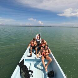 Mit dem Boot sind wir dann durch die Lagune gebrettet, die an manchen Stellen von Süßwasser-Cenoten gespeist werden, was unterirdische Wassertunnel sind die das Meer und und die Lagune verbinden. Alles ist ein geschlossenes System.