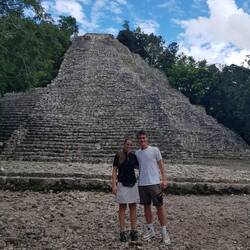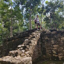 Als wir den Eingang passierten, voller Fokus auf die Mayastätten und es war toll! Das nächste Mal ist eine Führung wrsl hilfreich aber war mega solche alten Bauwerke zu sehen! Die größte Pyramide ist 42m hoch und hat 120 Stufen. Leider ist wegen Corona der Aufstieg verboten😥